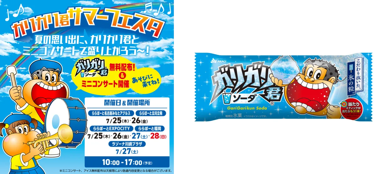 本イベントでは、ガリガリ君と一緒に「ガリガリ君のうた」を演奏・歌ってくれる団体が登場します。さらに、昨年約20年ぶりにリニューアルされた「ガリガリ君ソーダ」が、合計14万本無料配布される予定です。