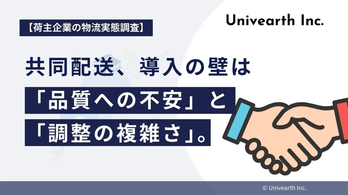 物流効率化の手法として注目される共同配送。しかし、その導入をためらう荷主企業が多いことが明らかになりました。この背景には、品質の維持や調整の煩雑さがあげられます。株式会社Univearthが実施した調査によると、共同配送の最大の懸念は「配送品質の維持・管理への不安」で44.2%の企業がこの点を挙げています。次いで「荷物の組み合わせや配送スケジュールの調整の複雑さ」が43.4%となっており、導入の壁が何かを直視する必要があります。