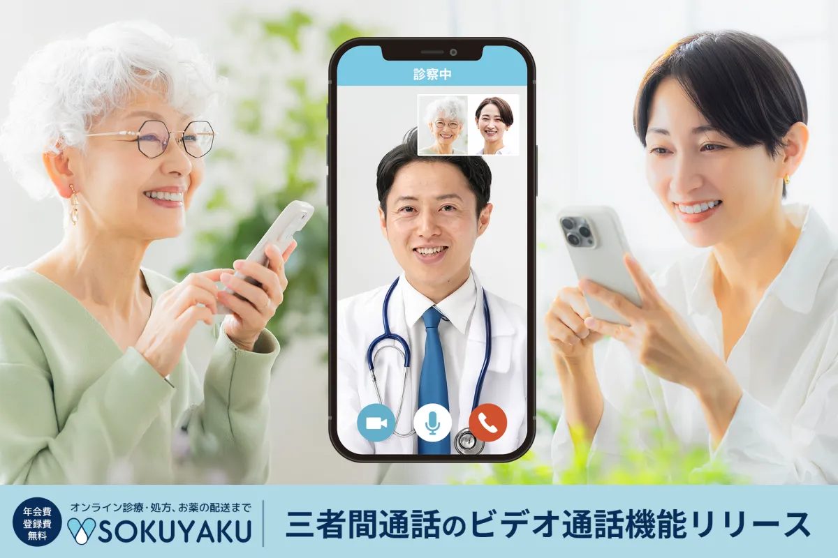 さらに、日本の高齢者の中には、病院への通院が困難な方も多く、オンライン診療を受けたいと思っても、スマートフォンでの操作が難しくて諦める方が少なくありません。このような医療における格差を解消し、全ての人に平等な医療を提供することを目指して、SOKUYAKUは三者間通話機能を導入しました。