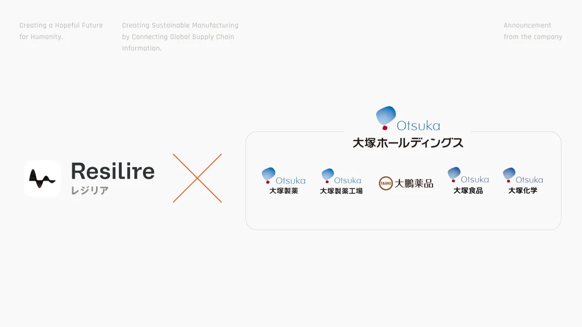 大塚グループは、社会課題の解決を目指す企業理念のもと、新たに策定した中期経営計画においても、「ビジネスパートナーと協働したサステナブルな社会の実現」を掲げています。この「サステナブル調達プラットフォーム」としてのResilireの導入により、環境や人権に関わる社会問題に責任を持ち、同時に品質・価格・納期の最適化を図ることが見込まれます。