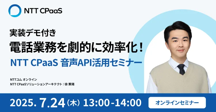 2025年7月24日(木)に、NTTコム オンライン・マーケティング・ソリューション株式会社がオンラインセミナーを開催します。このセミナーは、電話業務の自動化や効率化について学びたいエンジニアや開発担当者を対象に、NTT CPaaSの音声APIを利用した具体的なアプローチを提供します。