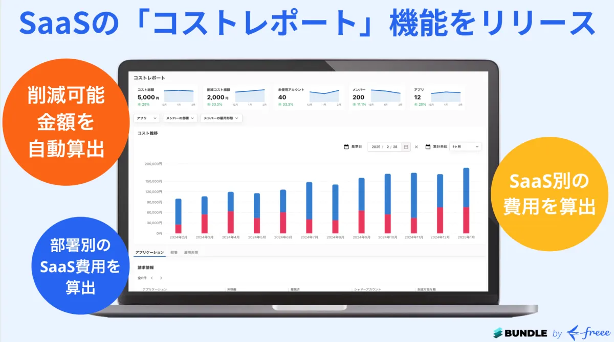 フリー株式会社が提供するSaaS一元管理クラウド「Bundle by freee」は、企業の情報システム部門に特化した新たな機能、コストレポート機能を導入しました。この機能は、企業が利用するSaaSのコストを可視化し、どれだけのコスト改善が可能かをレポートとして出力することができます。これにより、情報システム担当者はより的確な投資判断を行うことができるようになります。