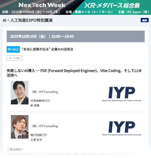 SVGは、2025年10月8日から10日まで幕張メッセで開催されるAI・人工知能EXPOにて一般公開される予定です。崔CEOによるセミナーも行われ、来場者に向けて詳しい説明や質疑応答の時間が設けられます。この機会を逃さず、最先端の技術に触れてみてはいかがでしょうか。