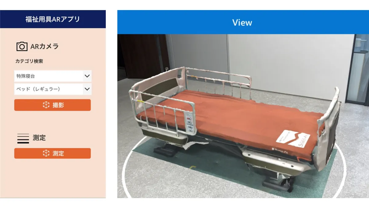 実際、介護用品の選定時には、複数の実機を持参し、設置してみるという対応がなされることが多く、納品までに思わぬ時間がかかる場合もありました。また、未使用の介護用品が再洗浄や再出荷を必要とし、物流面での負担も大きかったのです。これらの課題を解決するため、現場の社員からのアイデアをもとに、AR技術を用いた「直感的に使える配置アプリ」の開発が始まりました。