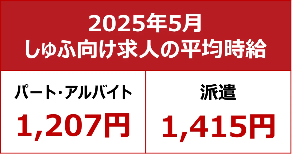 株式会社ビースタイルメディアが運営する求人サイト『しゅふJOB』によると、2025年5月の平均時給データが発表されました。パート・アルバイトの全国平均時給は1,207円、派遣については1,415円となり、詳細を見ていくと興味深い結果が浮かび上がってきます。
