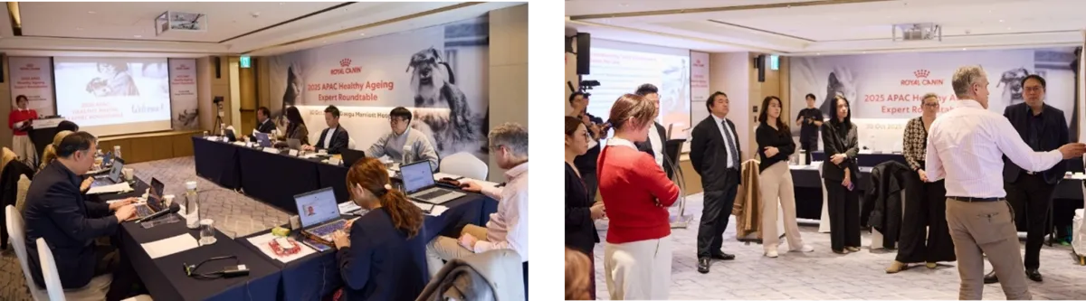 大会前日の10月30日、ロイヤルカナンは「ペットのヘルシーエイジング-長く、幸せな一生のために」をテーマにしたラウンドテーブルを主催しました。アジア太平洋地域から9名の著名な獣医師を招き、ペットの高齢化に伴う健康管理の課題や機会について深い議論が交わされました。参加した獣医師は、韓国のJoy Lee氏、ニュージーランドのNick Cave氏、オーストラリアのRachel Korman氏、台湾のShinguen Kim氏など多国籍な顔ぶれです。