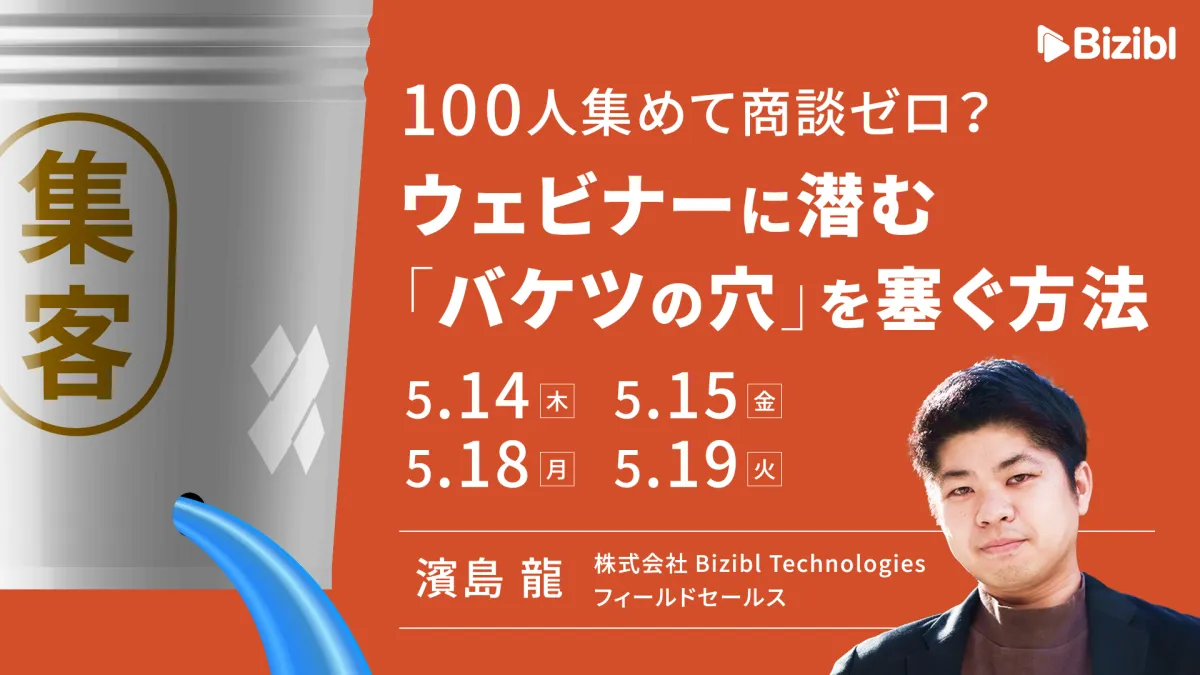 - - ウェビナー名: 100人集めて商談ゼロ?ウェビナーに潜む「バケツの穴」を塞ぐ方法