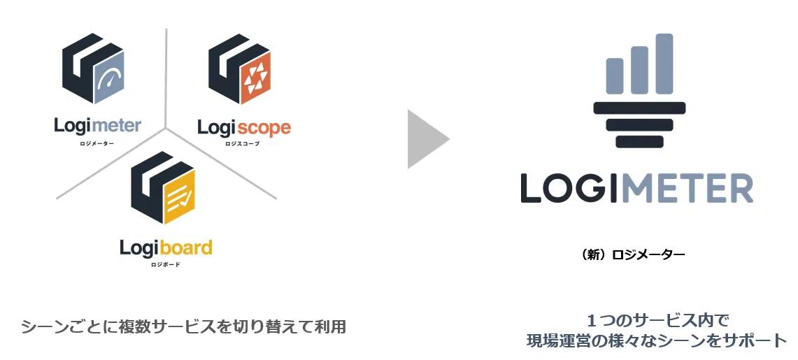 新たに生まれ変わる「ロジメーター」の名称は、従来の3つのサービスを統一する形で一本化されます。「LOGIMETER」という一つの名称によって、ユーザーはより分かりやすく、利便性が向上します。