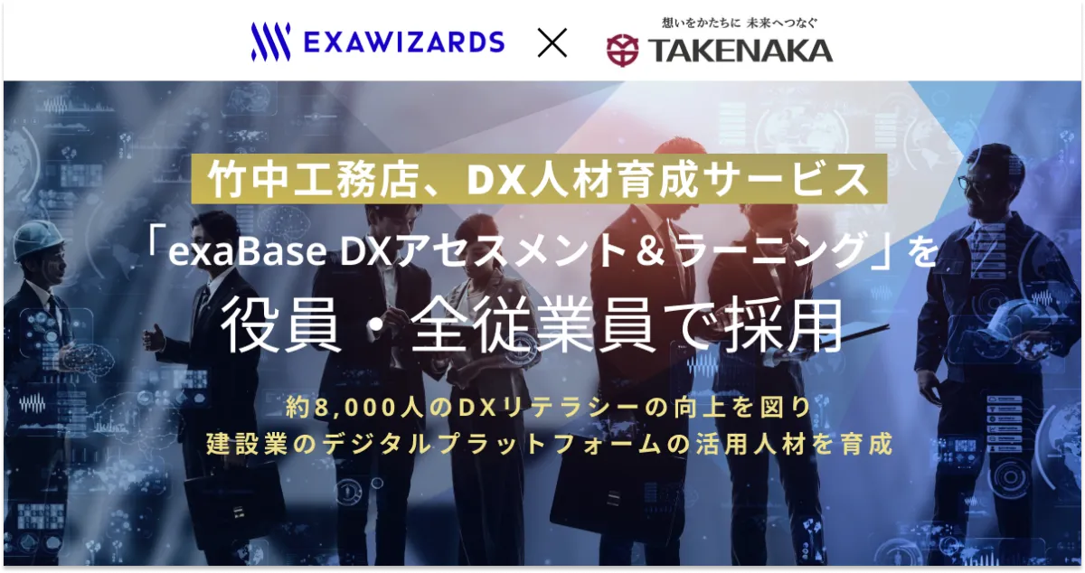 竹中工務店が全従業員を対象にDX人材育成サービス「exaBase DXアセスメント&ラーニング」を導入し、デジタルリテラシーの向上を目指しています。建設業界では、設計や施工条件が現場によって異なるため、デジタル化の標準化や自動化が困難です。また、2024年の労働時間の上限規制により、労働力の確保が急務となっています。これらの課題を解決するため、竹中工務店は建設事業のデジタル化を積極的に進めており、デジタルプラットフォームの開発にも取り組んでいます。