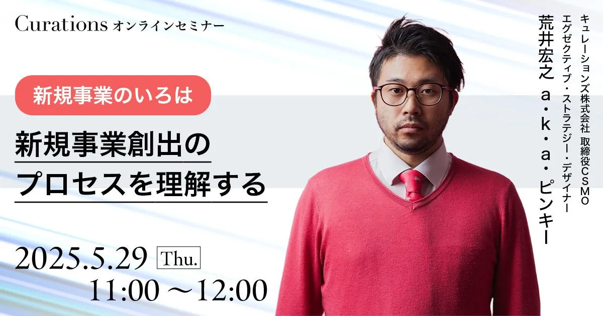 2025年5月29日(木)に、キュレーションズ株式会社が主催する無料オンラインセミナー「新規事業のいろは」が開催されます。このセミナーは、新規事業に携わるすべての人々に向けて、実践的なビジネス変革のプロセスを学ぶことができる貴重な機会です。