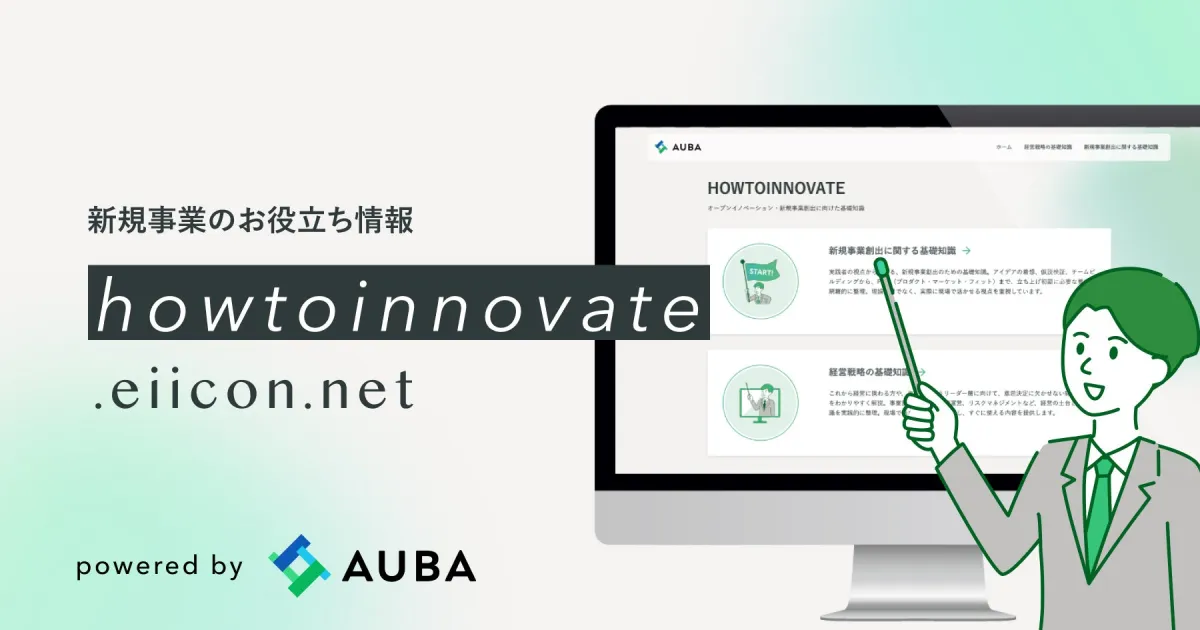 株式会社eiiconが運営する日本最大のオープンイノベーションプラットフォーム「AUBA」が、7月2日に新たにビジネスメディア「HOWTOINNOVATE」を開設しました。このメディアはオープンイノベーションや新規事業創出に関心のある企業や実務者を対象とし、多様な知見やノウハウを提供します。