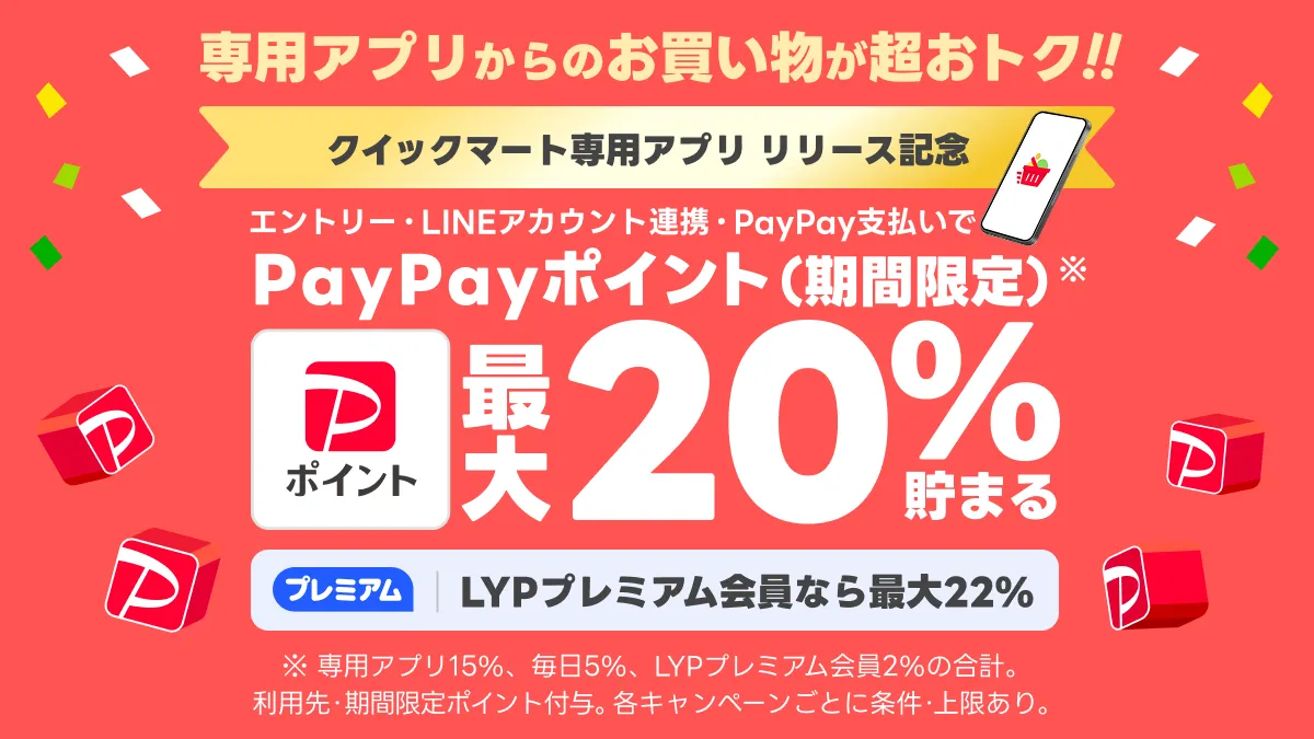また、Yahoo! JAPANとLINEのアカウントを連携し、PayPay支払いを選択すると、対象金額に応じて最大20%(LYPプレミアム会員は最大22%)の「PayPayポイント」が獲得可能です。これにより、スムーズな注文とさらにお得な買い物体験が実現します。