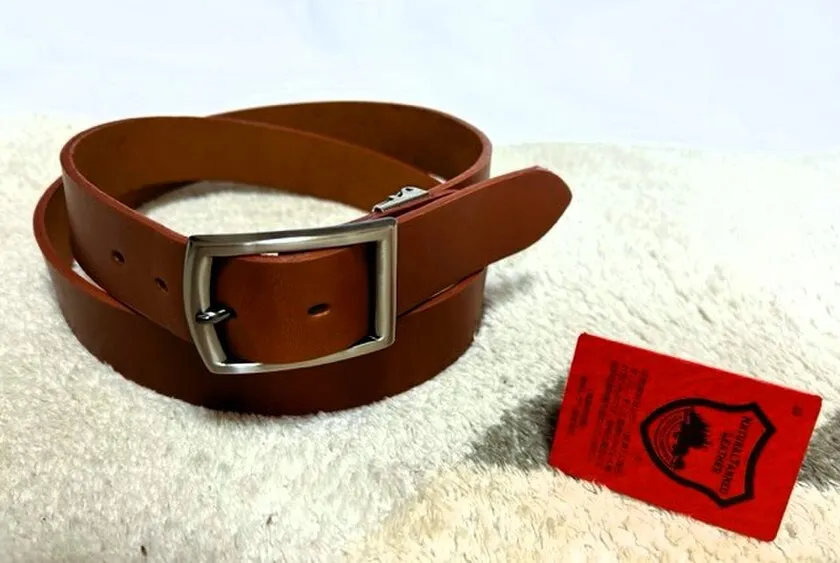 この栃木レザーベルトの特徴は、何と言っても国産の栃木レザーを使用している点です。厳選された上質な牛革を使い、特別ななめし加工が施されています。植物由来の溶剤に漬け込む工程を経て作られたこの革は、自然の風合いを大切にし、年月による傷や皺も一つの個性として楽しむことができます。