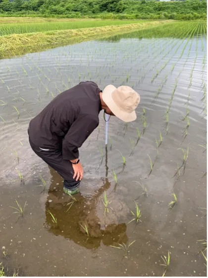 J-クレジット制度においては、特に水稲栽培におけるカーボンクレジット生成には、中干し期間を延長するための証明データが求められます。そこで、フェイガーでは農家が撮影した画像を基にして、独自のシステムでデータを蓄積。その中で、同時に地元パートナーによるモニタリングも交え、農業プロジェクトの信憑性を高めています。