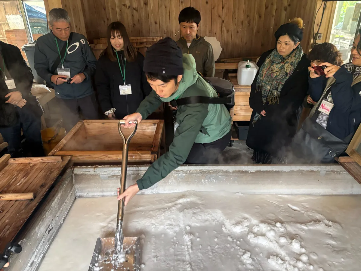 1日目には、オリエンテーションや地域の説明、関係者との対話が行われ、参加者はチームに分かれました。2日目にはフィールドワークが行われ、参加者はクバカゴの制作や自然海塩づくり、300年の歴史を持つガジュマルの見学、さらに喜念浜での闘牛散歩などを体験しました。