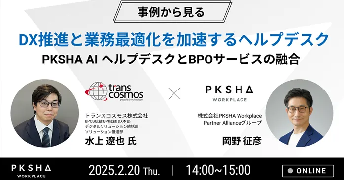 2025年2月20日、トランスコスモスが主催するオンラインセミナー「DX推進と業務最適化を加速するヘルプデスク」が開催されます。このセミナーでは、デジタルトランスフォーメーション(DX)を推進し、業務プロセスの最適化を図るための具体的な手法や事例が紹介されます。