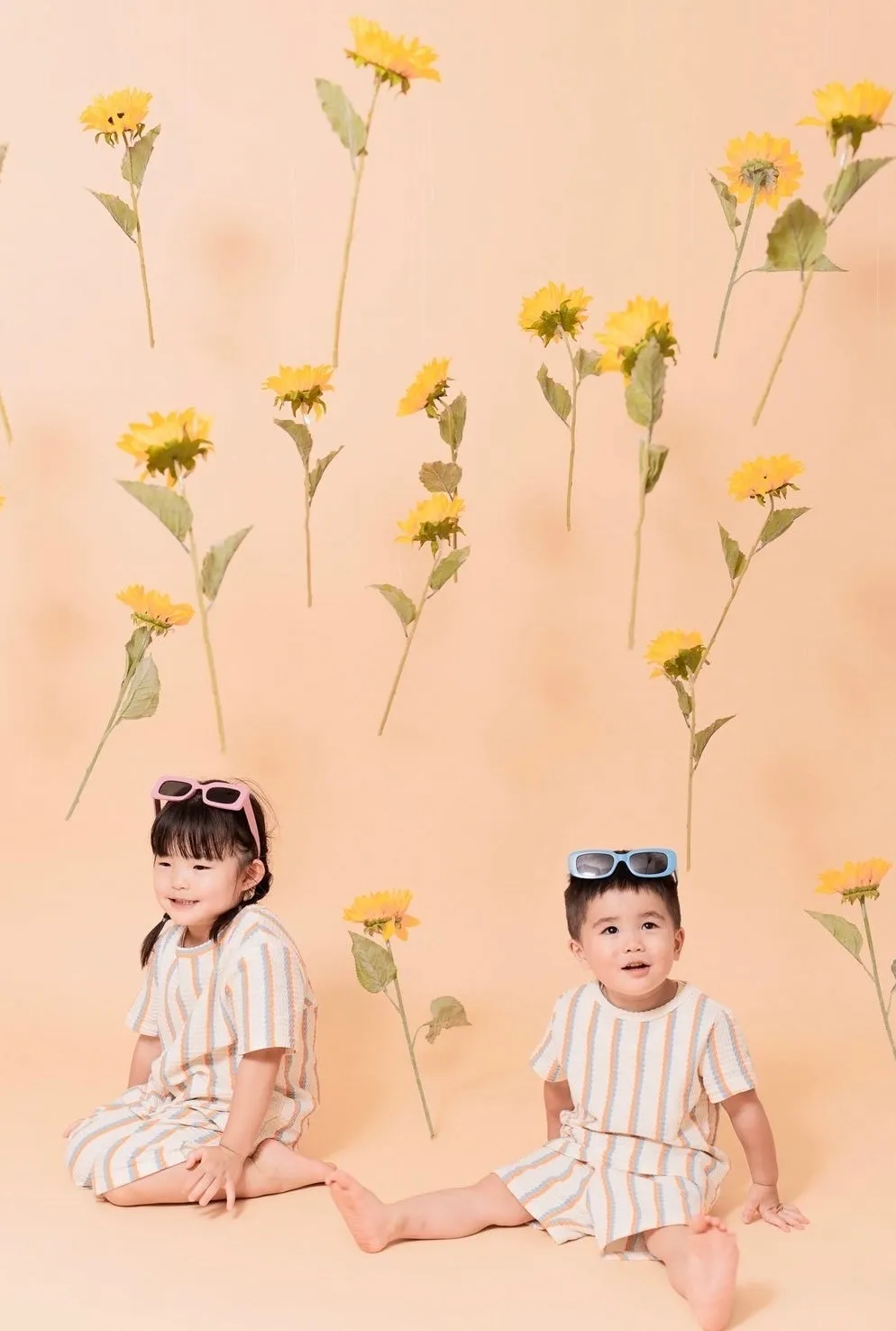 スタジオの一面には、宙に浮かぶたくさんのひまわりをデザインした背景と、カラフルなオプションのカラー背景が用意されています。これにより、気分はまるで夏のひまわり畑にいるかのよう。特別な思い出を、特別な場所で撮影できます。