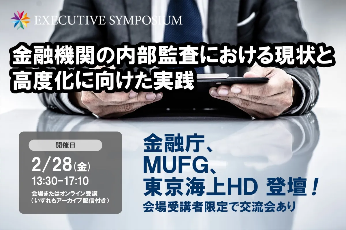株式会社セミナーインフォは、2025年2月28日(金)に「【EXECUTIVE SYMPOSIUM】金融機関の内部監査における現状と高度化に向けた実践」を開催します。このセミナーには、金融庁の小笠原 規人氏、株式会社三菱UFJフィナンシャル・グループの横山 修一氏、東京海上ホールディングスの滝澤 俊平氏という著名な講師が登壇し、内部監査の現状や具体的な取り組み事例についてお話しします。