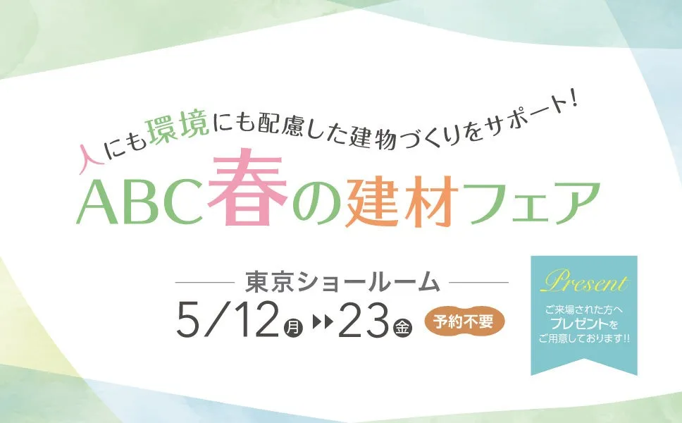 この春、ABCの建材フェアを訪れ、環境と共生する建物づくりに向けた新たな一歩を踏み出しましょう。皆様のご来場を心よりお待ちしております。