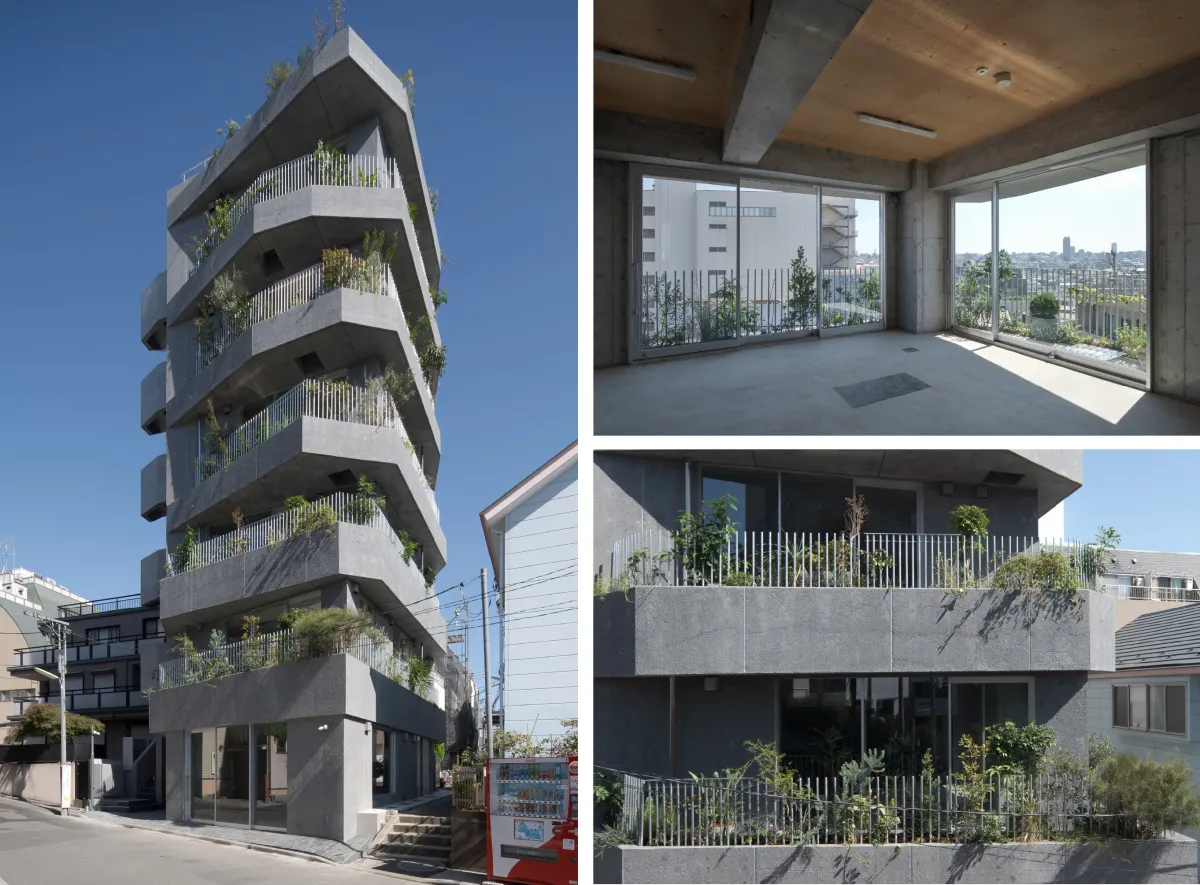 このビルは、時間や流行に左右されない力強い存在感を持つことを目指しています。立体的に配置された植栽がファサードを彩り、岩のような形態が印象的です。この独自のデザインは、建物が単なる商業施設ではなく、まるで彫刻や自然物のような佇まいを醸し出しています。