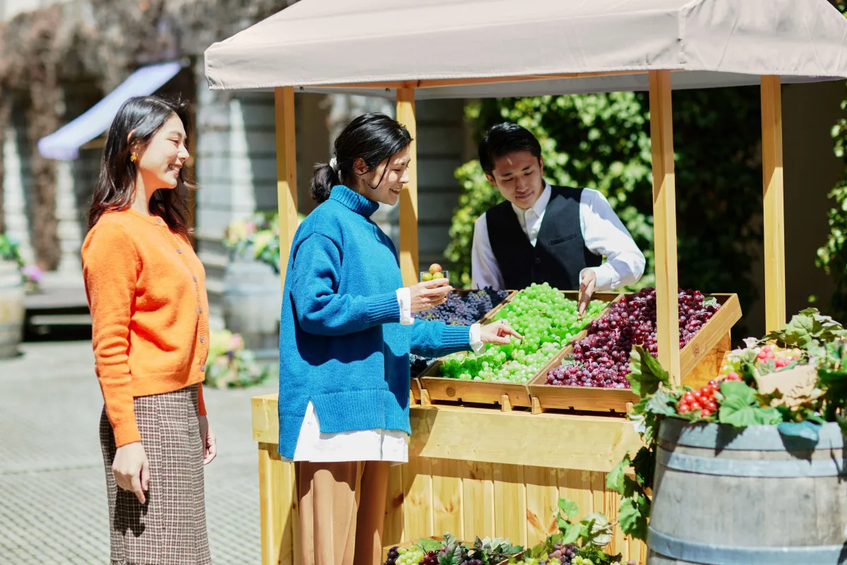 「回廊の葡萄フェスタ」では、地元の生産者による対面販売もあります。約20種類の葡萄を取り揃え、各品種の特性や栽培の裏話をきかせてくれる機会もあり、訪れる人々は生産者と直接ふれあいながら好みの葡萄を見つける楽しさを味わえます。