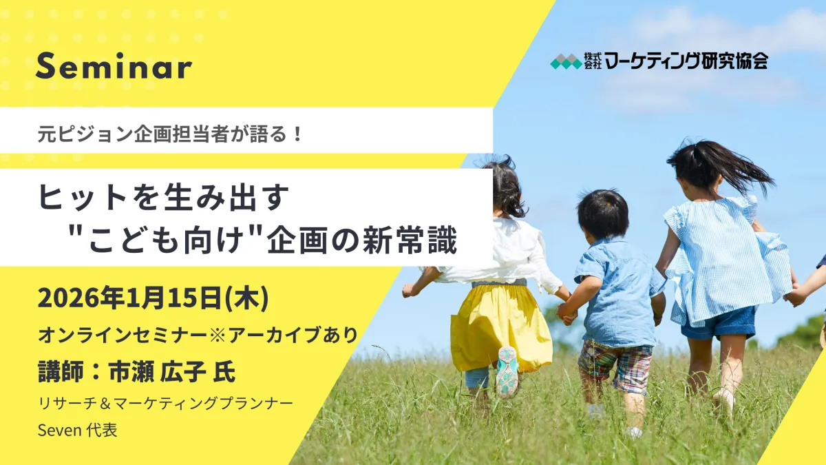 2025年1月15日、株式会社マーケティング研究協会が主催する「こども向け企画の新常識セミナー」が開催されます。このセミナーは、少子化が進む中での「こども向け」の市場の可能性を探るものであり、参加者にとって新たなビジネスチャンスを見つけ出す手助けとなるでしょう。