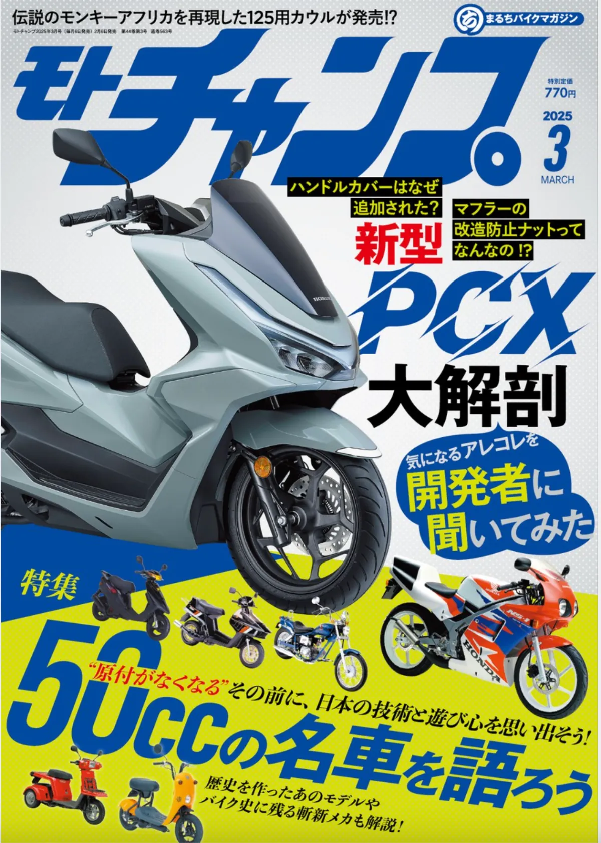 月刊モトチャンプの2025年3月号が、2月6日に発売されます。この号の特集タイトルは「原付が無くなるその前に、日本の技術と遊び心を思い出そう!50ccの名車を語ろう」です。1978年のモトチャンプ創刊以来、ユーザーと共に育んできた原付カルチャーを振り返り、一時代を築いた名車たちにスポットを当てた内容です。