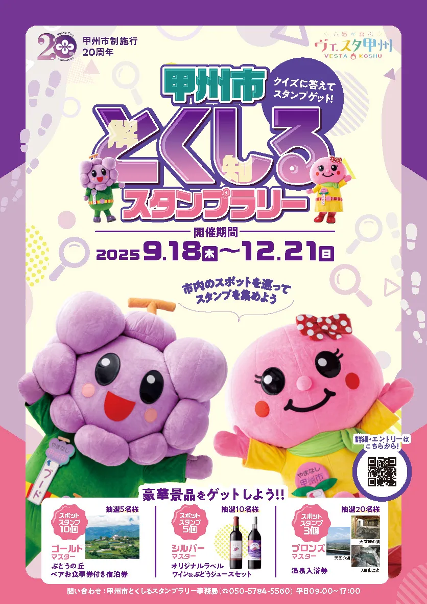 参加を希望される方は、公式特設サイトで事前にエントリーしてください。スタンプラリーを通じて、甲州市の歴史や文化、自然の美しさを存分に味わいながら、豪華な賞品が当たるチャンスを手に入れましょう!