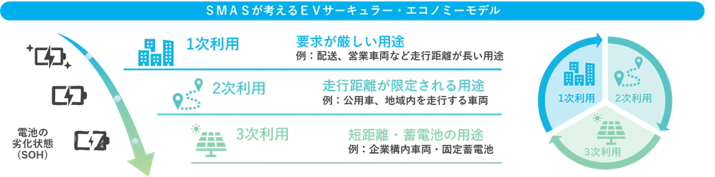 SMASは、電気自動車の価値をライフサイクル全体で最大化する「EVサーキュラー・エコノミーモデル」を推進しています。リユースEVの導入が進むことで、企業や自治体が抱える多様なニーズに応え、循環型社会の実現に貢献することが期待されています。これにより、EVの2次・3次利用が可能になり、市場での活用範囲も広がります。