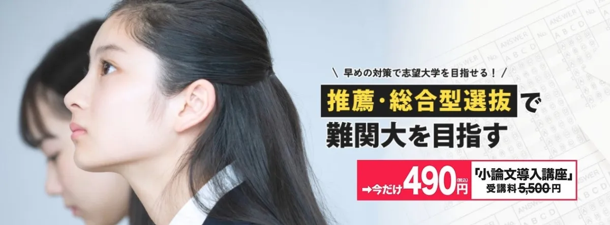 小論文の基礎をしっかり学んで、難関大学合格への第一歩を踏み出しましょう。この特別価格490円で受講できる機会は、受験生にとって貴重な経験となることは間違いありません。オンラインでの受講が可能で、自由な時間に学べる点も大きなメリットです。まずは、公式ページを訪れて詳細を確認してください。進学に向けて新たな一歩を踏み出しましょう!