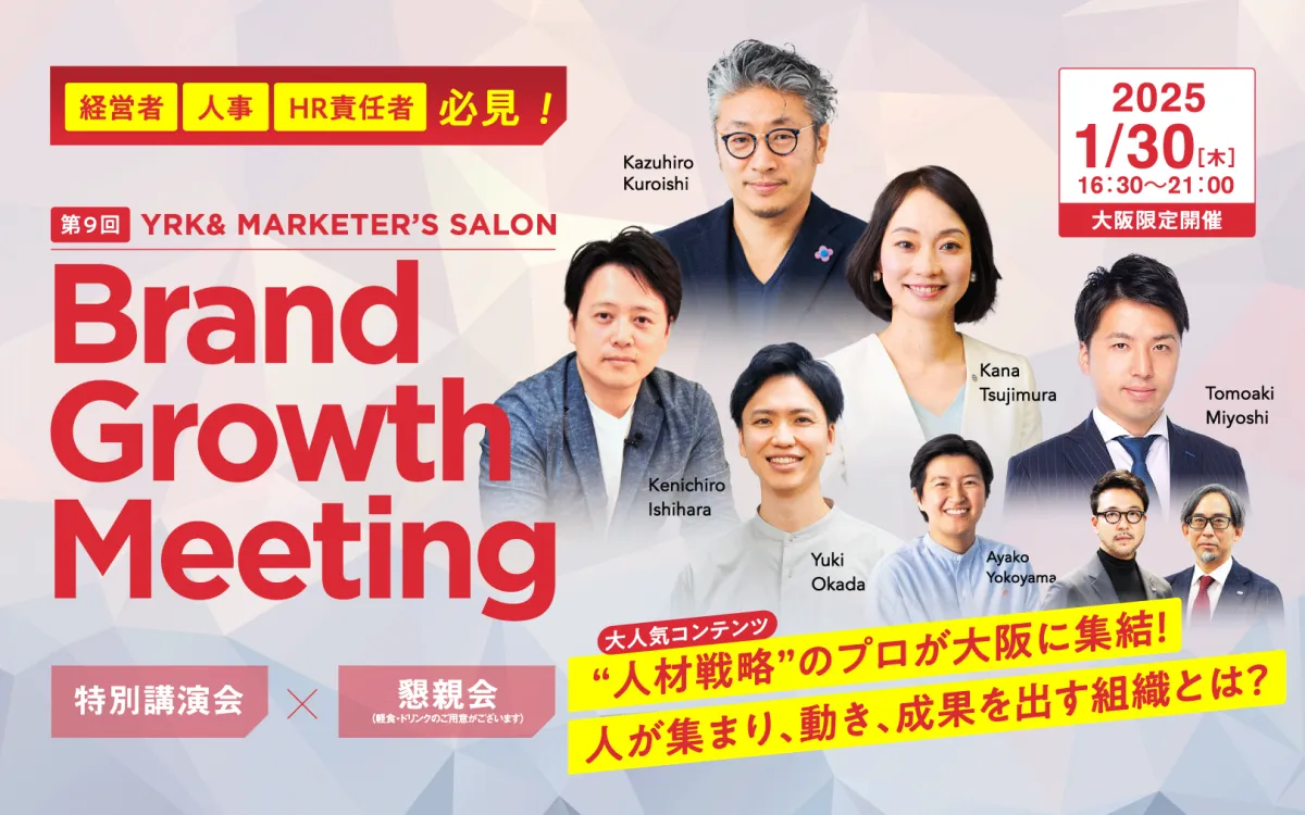 2025年1月30日、大阪市内において特別なビジネスイベント「Brand Growth Meeting」が開催されます。このイベントは、歴史あるブランドコンサルティングファーム、株式会社YRK andが主催し、企業の経営者や人事担当者を対象にしたものです。テーマは「強い組織に不可欠な人材戦略」。参加者は、普遍性と革新性のバランスを取りながら、どのように組織を成長させていくべきかを深く掘り下げることができます。