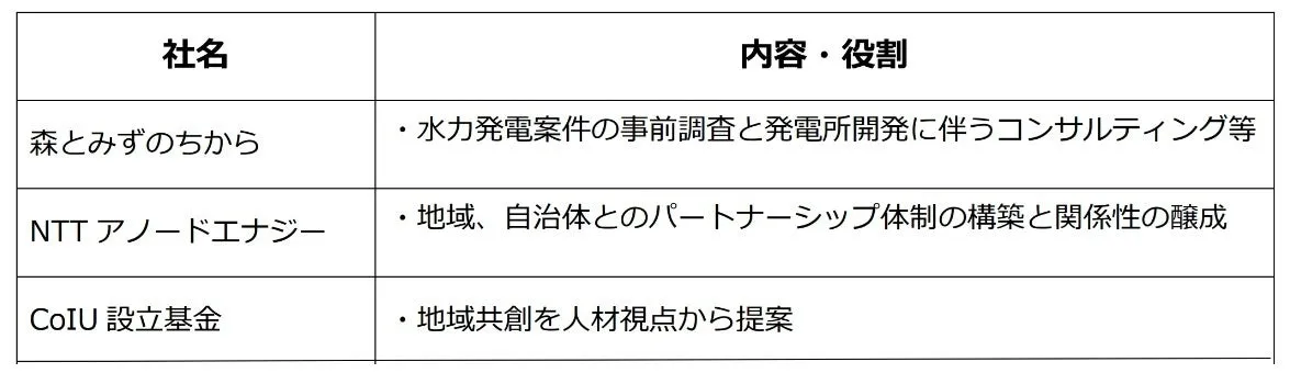 株式会社森とみずのちから、NTTアノードエナジー、そしてCoIU設立基金の三者が手を組み、国内の豊かな水資源を利用した小水力発電事業の可能性を探求しています。この取り組みは、地方創生と地域共生、及び脱炭素社会の実現を目指したもので、再生可能エネルギーの普及を通じて地域産業の発展にも寄与することを目的としています。