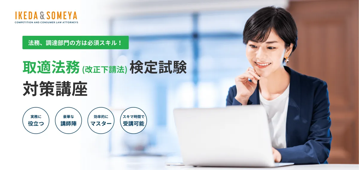 新講座では、改正された法令の詳細をしっかりと反映しており、受験生だけでなく、実務担当者にとっても大変有用な内容となっています。公正取引委員会での経験を持つ弁護士が講師となり、実務上の留意点をしっかりと解説します。特に、取適法の内容を体系的に学びたい方にはうってつけの講座です。