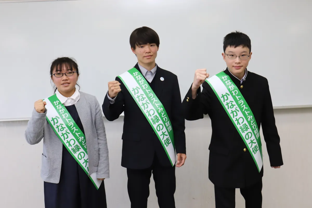 「かながわ緑の大使」の任期は1年間。中学・高校・大学に通う学生や20代の若者を対象に、地域の緑を守る活動に取り組みます。これまで過去5年間で、18名の大使が選出され、様々なイベントやボランティア活動で活躍してきました。団体主催の自然観察会や森林ボランティア活動に参加し、環境保全のために募金活動も行います。