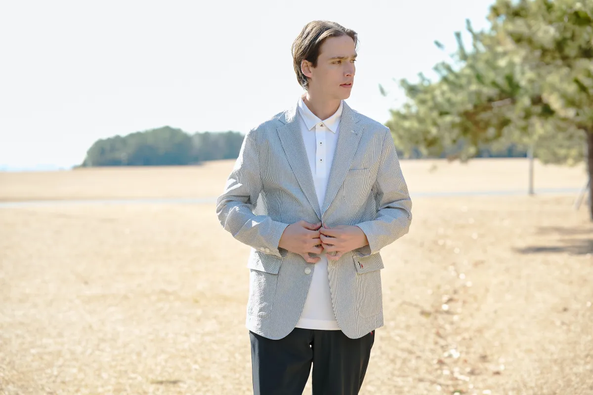 今回発売されるジャケットは、特別な素材「COOLMAX(クールマックス)」を使用しており、軽量でありつつ適度なハリ感を持ち、シアサッカー素材によって仕立て映えの良い仕上がりになっています。上品さが際立つデザインで、特にゴルフ場のクラブハウスでの着用にもぴったりです。