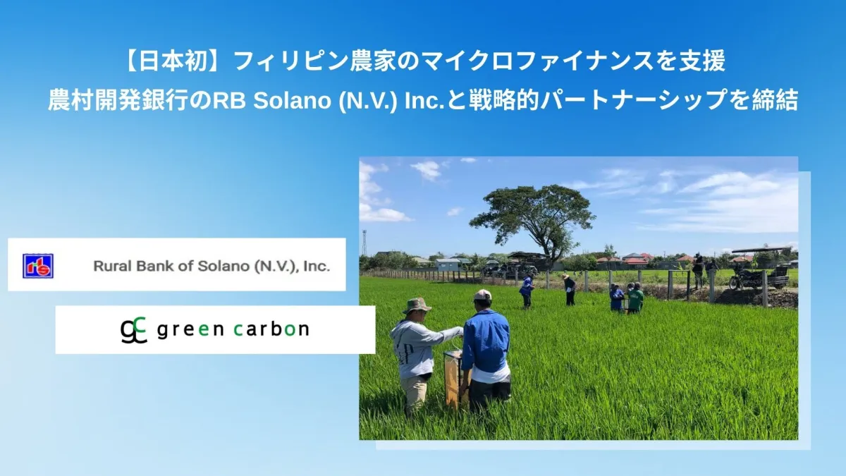 Green Carbon株式会社は、フィリピンの農業を支援するための新しいパートナーシップを結びました。これは、フィリピン北部ルソン地方に位置する農村開発銀行RB Solanoと手を組むことで、それぞれの強みを活かし、現地農家へのマイクロファイナンス支援を行うものです。
