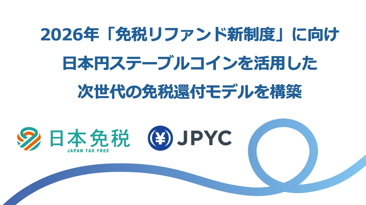 日本の免税制度は2026年11月にリファンド方式に移行しますが、この新たな転換に向けて、JPYC株式会社と株式会社日本免税が業務提携を結びました。提携の目的は、日本円建ステーブルコイン「JPYC」を活用した次世代の免税還付モデルの構築です。