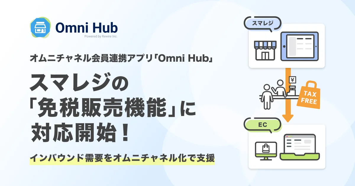株式会社リワイアが開発したオムニチャネル会員連携アプリ「Omni Hub」は、スマレジの免税販売機能との連携を開始しました。この新機能により、免税販売を行った情報がShopifyとシームレスに連携され、訪日外国人客に向けたのおもてなしの質がさらに向上します。