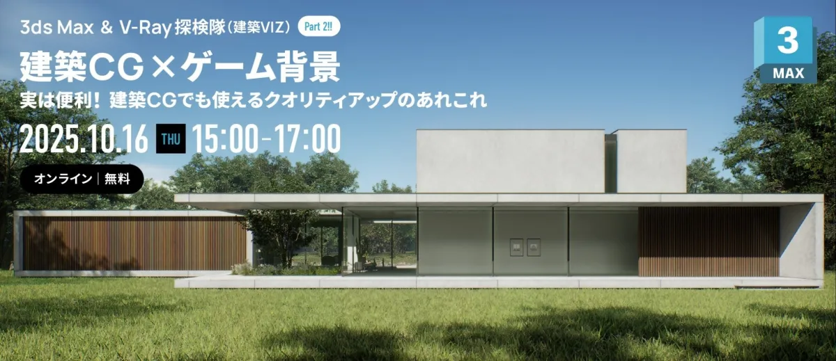 株式会社ボーンデジタル(東京都千代田区)が主催するオンラインセミナー「3ds Max & V-Ray 探検隊(建築VIZ)Part 2!!」は、2025年10月16日(木)に開催されます。このセミナーは、建築ビジュアライゼーションの専門家やゲーム業界に興味を持つ方々を対象としており、参加は無料です。事前の登録が必要になりますのでご注意ください。