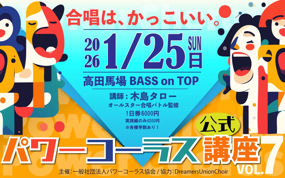 フジテレビの人気音楽特番「オールスター合唱バトル」の編曲・指導を担当する木島タローが、その独自のスタイルを基にした「パワーコーラス体験講座」の第7弾を開催します。2026年1月25日(日)、東京の高田馬場にあるダンススペースベースオントップで行われるこの講座では、最新の合唱バトルの楽曲を使用し、木島氏の直接指導の下、合唱スキルを向上させる絶好の機会となります。