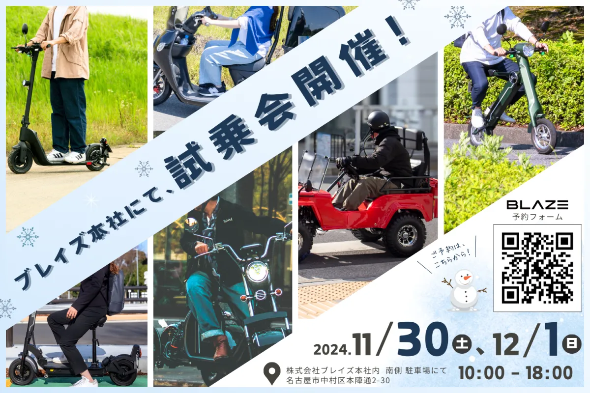 名古屋市で、電動モビリティの革新をリードする株式会社ブレイズが試乗会を開催するという、電動バイクファンには嬉しいお知らせです。2024年11月30日(土)と12月1日(日)の2日間、生命やビジネスに役立つ電動モビリティの魅力を直に体感できる機会です。