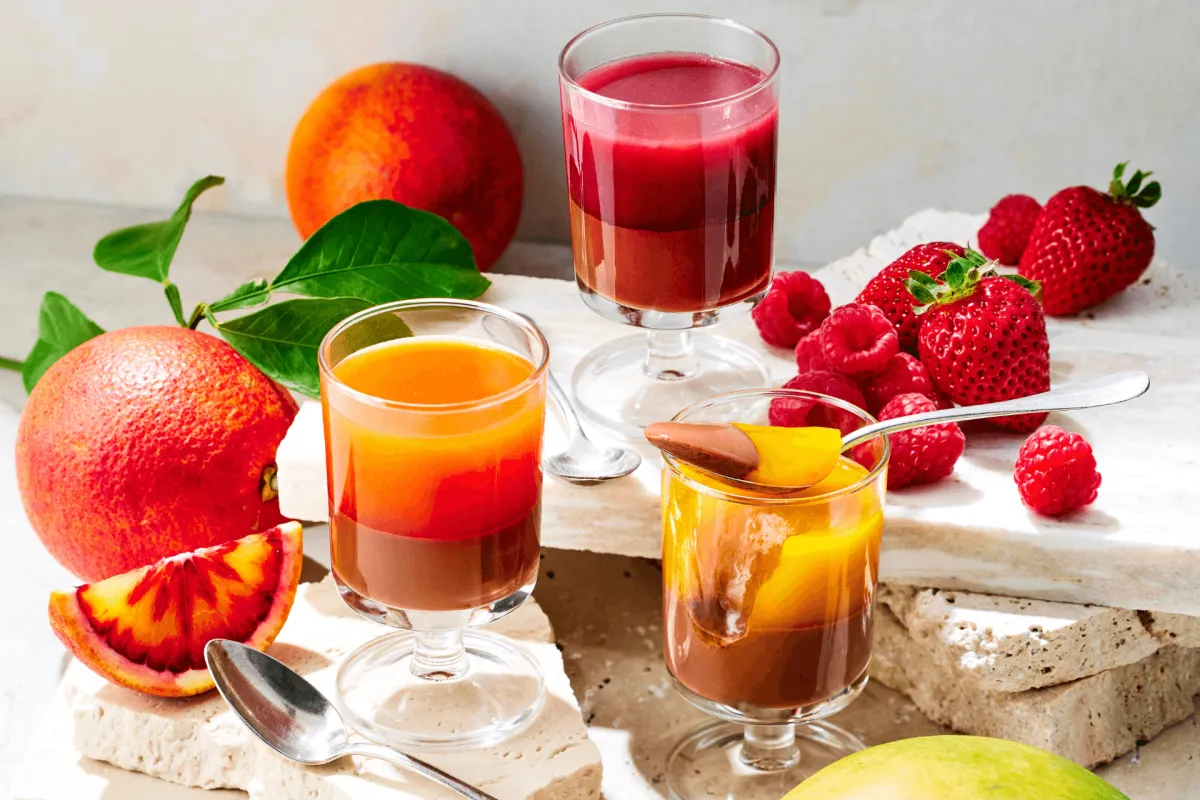 新作の「カカオドゥーブル」は、カカオの風味と選りすぐりのフルーツを組み合わせた2層のデザートです。特に、各層で使用される素材に違いを持たせており、全く異なる食感や味わいを楽しむことができます。