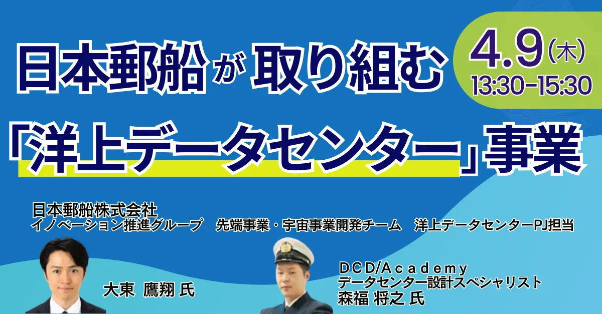 講師には、日本郵船株式会社のイノベーション推進グループに所属する大東 鷹翔氏と、DCD/Academyからデータセンター設計のスペシャリストである森福 将之氏が参加します。彼らの専門知識を基に、「洋上データセンター」とは何か、どのようにして市場を形成していくのかについて語られる予定です。