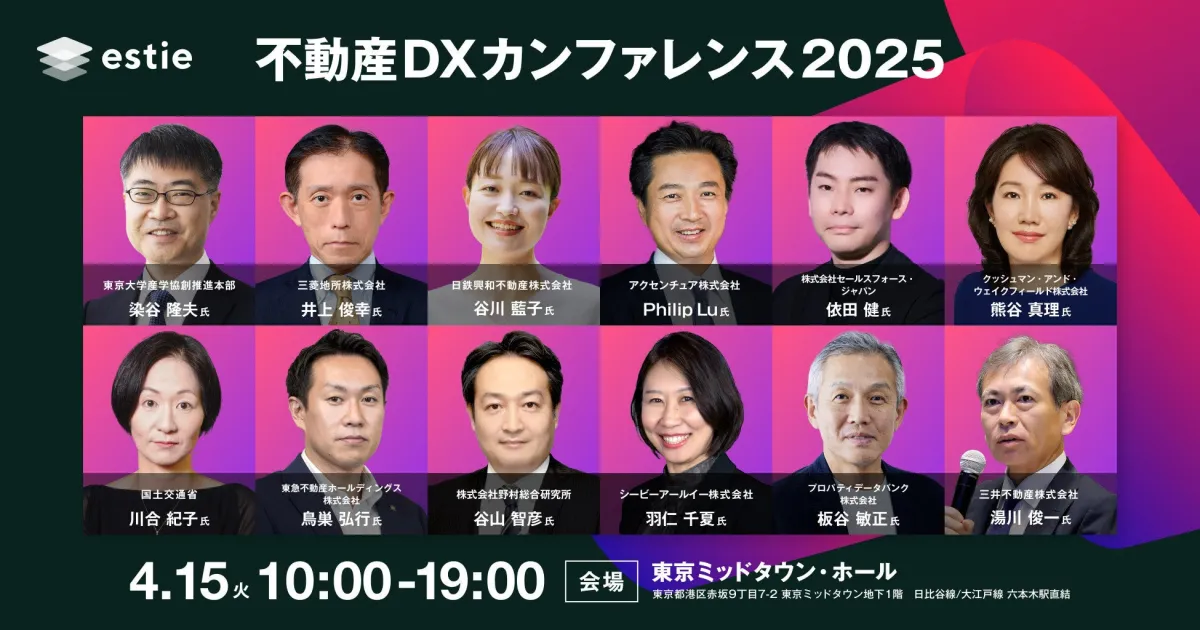 不動産業界のデジタルトランスフォーメーション(DX)をリードする株式会社estieは、2025年4月15日(火)に「不動産DXカンファレンス2025」を東京ミッドタウンで開催します。このカンファレンスでは、産官学のリーダーたちが一堂に会し、業界の最新トレンドやビジネス戦略を共有します。全セッションが決定し、参加者にとって貴重な知見を得る機会が提供されることとなりました。