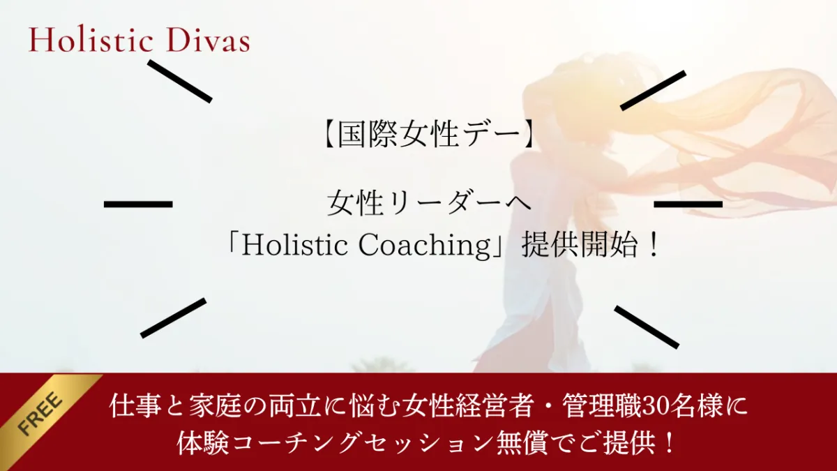 2025年3月8日、国際女性デーの到来を祝うにあたり、Holistic Divas(代表:小澤彰美)では、新たに「ホリスティックコーチング」のサービスを開始します。このコーチングは、女性経営者や管理職の皆様が抱える仕事と家庭の両立、パートナーシップの課題を解決するために特化したプログラムです。