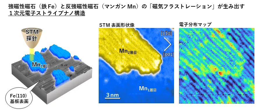 しかしながら、スピントロニクス材料として広く使われる鉄(Fe)とマンガン(Mn)を利用することで、より実用的な方法で1次元電子ストライプ構造を生成する道が開かれました。