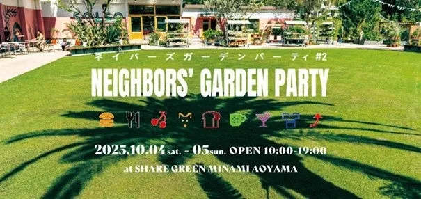 2025年10月4日(土)・5日(日)の2日間、南青山にある「SHARE GREEN MINAMI AOYAMA」にて、コミュニティイベント「NEIGHBORS’ GARDEN PARTY #2」が開催されます。このイベントは、地域住民や訪れる人々が場を共有し、交流を楽しむ場として設けられています。昨年3月に行われた第1弾では、約8,000人が参加し、各世代が共に楽しむ姿が見られました。今回もたくさんの人々が集うことでしょう。