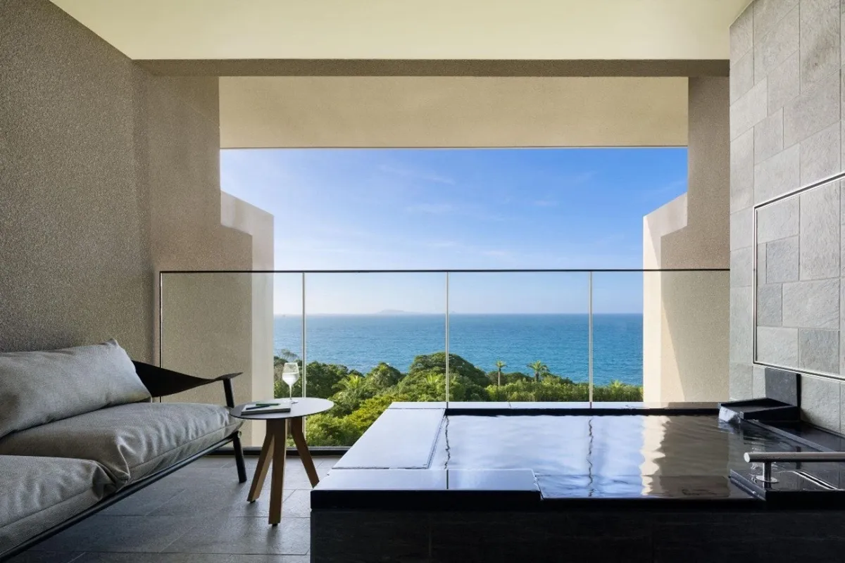 絶景のオーシャンビュー: 客室からは東シナ海の美しい景色を眺めながら、伝統的な温泉を楽しむことができます。約170年間受け継がれてきた温泉の歴史に触れつつ、海の恵みが融合したひと時をお過ごしください。