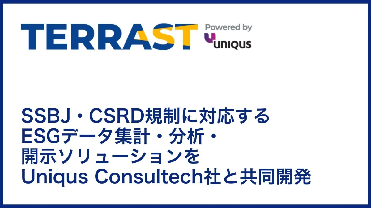 サステナブル・ラボ株式会社(所在地:東京、代表:平瀬錬司)は、Uniqus Consultech社と協力し、ESGデータの集計・分析・開示を行う新たなソリューション「TERRAST powered by Uniqus」を発表しました。日本の企業に特化して設計されたこのツールは、SSBJ(サステナビリティ基準委員会)やCSRD(企業サステナビリティ報告指令)など、複雑化するESG情報開示の要件に対応しています。