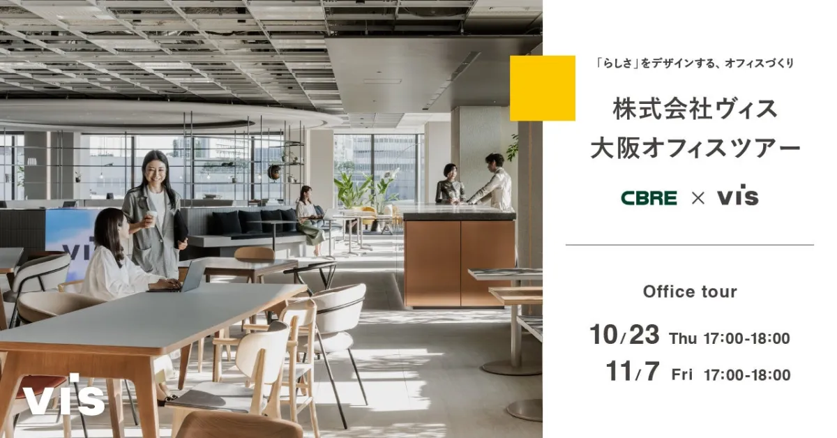 株式会社ヴィスが、10月23日と11月7日の2日間にわたり、大阪の新オフィスでオフィスツアーセミナーを開催します。2025年に10年ぶりに移転したこの大阪オフィスは、全社員が関わって誕生した特別な空間であり、皆さんにその魅力を直接体験していただける機会です。